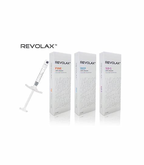 The Revolax Dermal Filler comes in a sterile, pre-filled syringe that is sealed in a blister pack. The blister pack is then placed in a cardboard box with the product information and instructions for use printed on it.